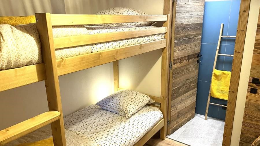 En rez-de-chaussée, une entrée ; la chambre "Loup" avec 1 lit de 180 x 200 cm, séparable en 2 lits de 90 x 200 cm et sa salle d’eau privative ; la chambre "Bouquetin" avec 1 lit de 180 x 200 cm, séparable en 2 lits de 90 x 200 cm ; la chambre "Renard" avec 2 lits superposés de 80 x 190 cm et sa salle d'eau privative ; la chambre "Marmotte" avec deux fois 2 lits superposés de 80 x 190 cm et 90 x 190 ainsi que sa salle d'eau privative ; des toilettes séparées ; une salle de bain avec toilettes ; une buanderie avec lave-linge et sèche-linge ;