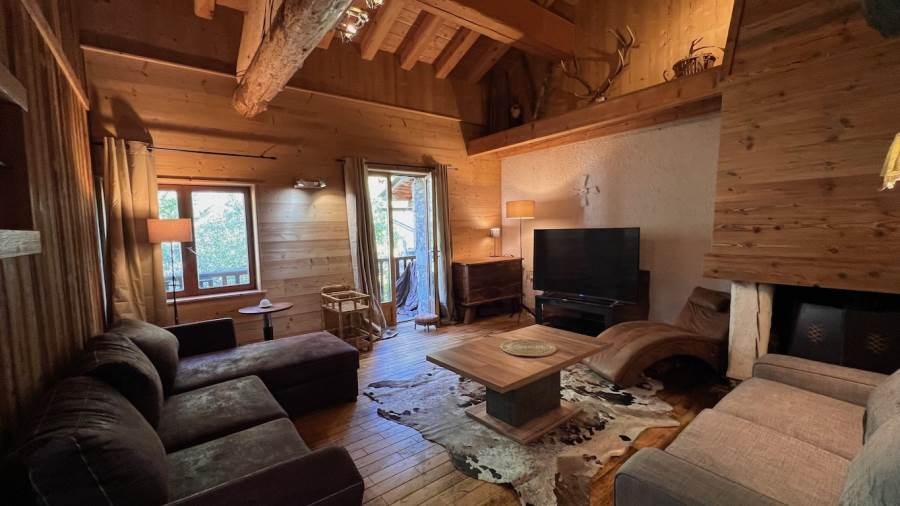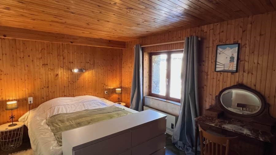 Dans le vieux village, chalet tout confort, avec jardin et balcon, vue sur montagne. L'appartement pour 6 personnes (82m2) avec balcon, composé de : - une chambre avec lit double, d'une chambre avec lits superposés (2 places), une seconde petite chambre avec lit double. - un séjour (TV, lecteur DVD) et cuisine séparée équipée (Four, micro ondes, LV, LL). - Salle de douche, WC séparés